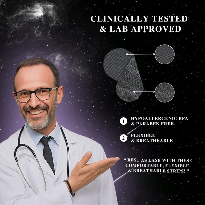 💜 RestoraSleep™ is made of soft, breathable fabric and hypoallergenic adhesive.